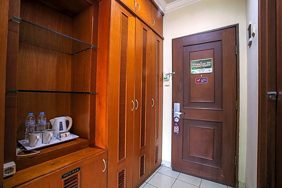 This double room offers more space and has a tea/coffee maker and tile/marble floor.